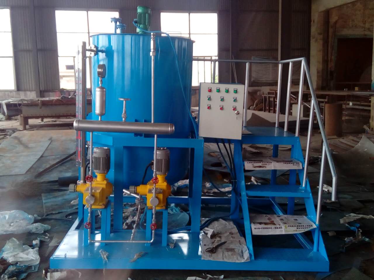 3、水處理磷酸鹽加藥裝置。在水處理過程-向自來水、廢水、污水-加磷酸鹽。主要用于有關給排水處理、環保等工藝流程。如自來水廠、賓館、飯店、游泳池、污水處理廠等。